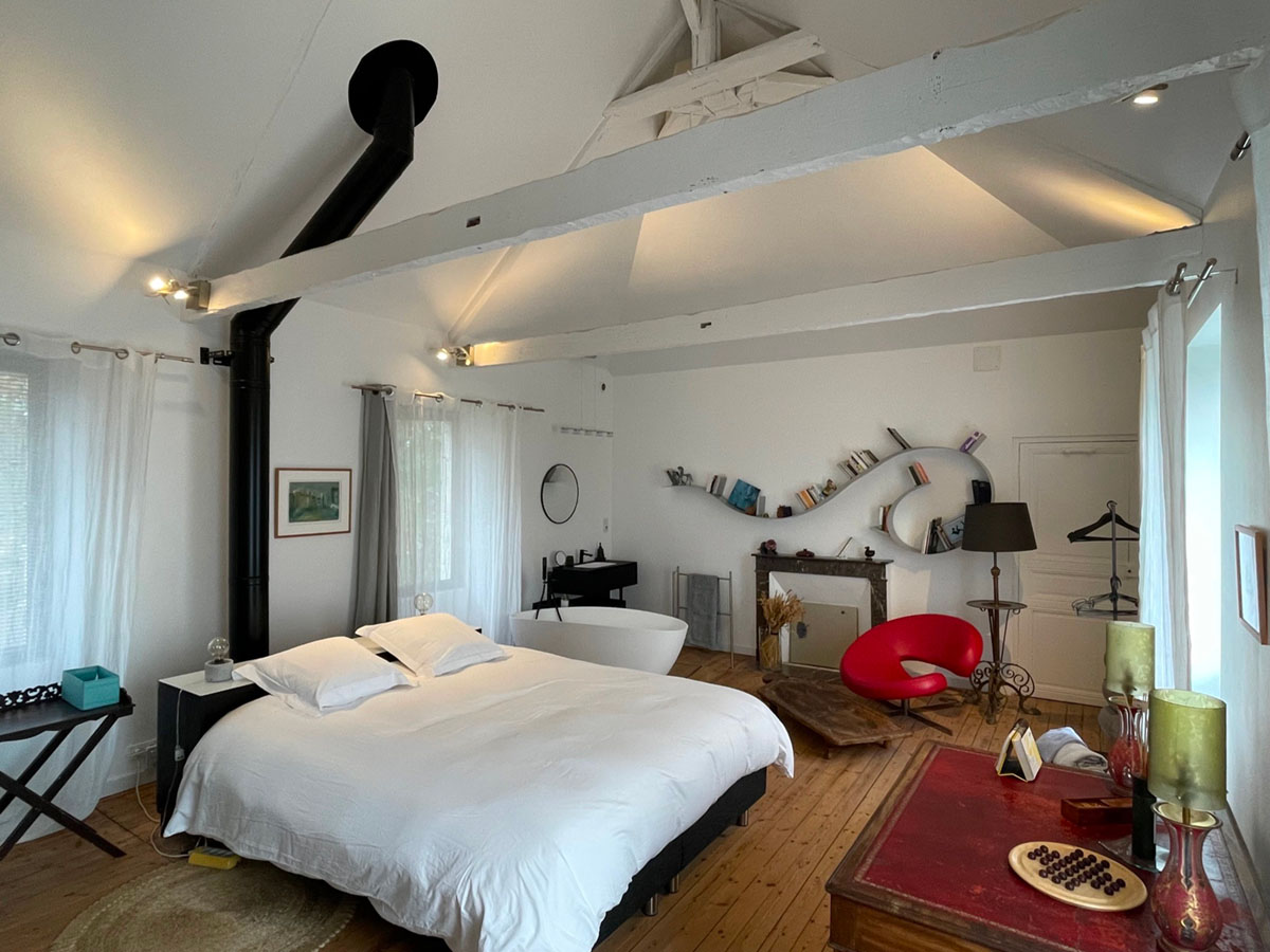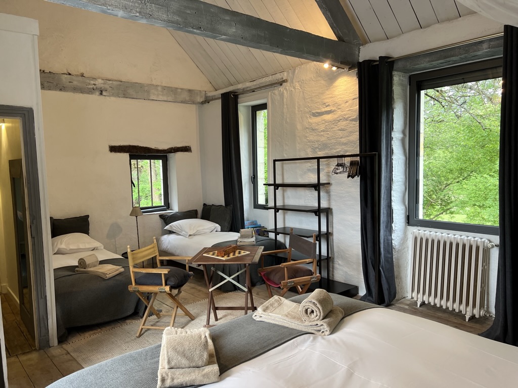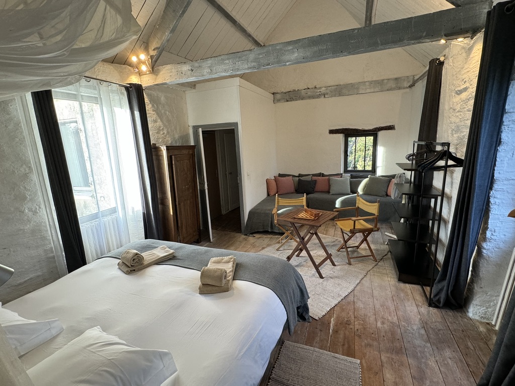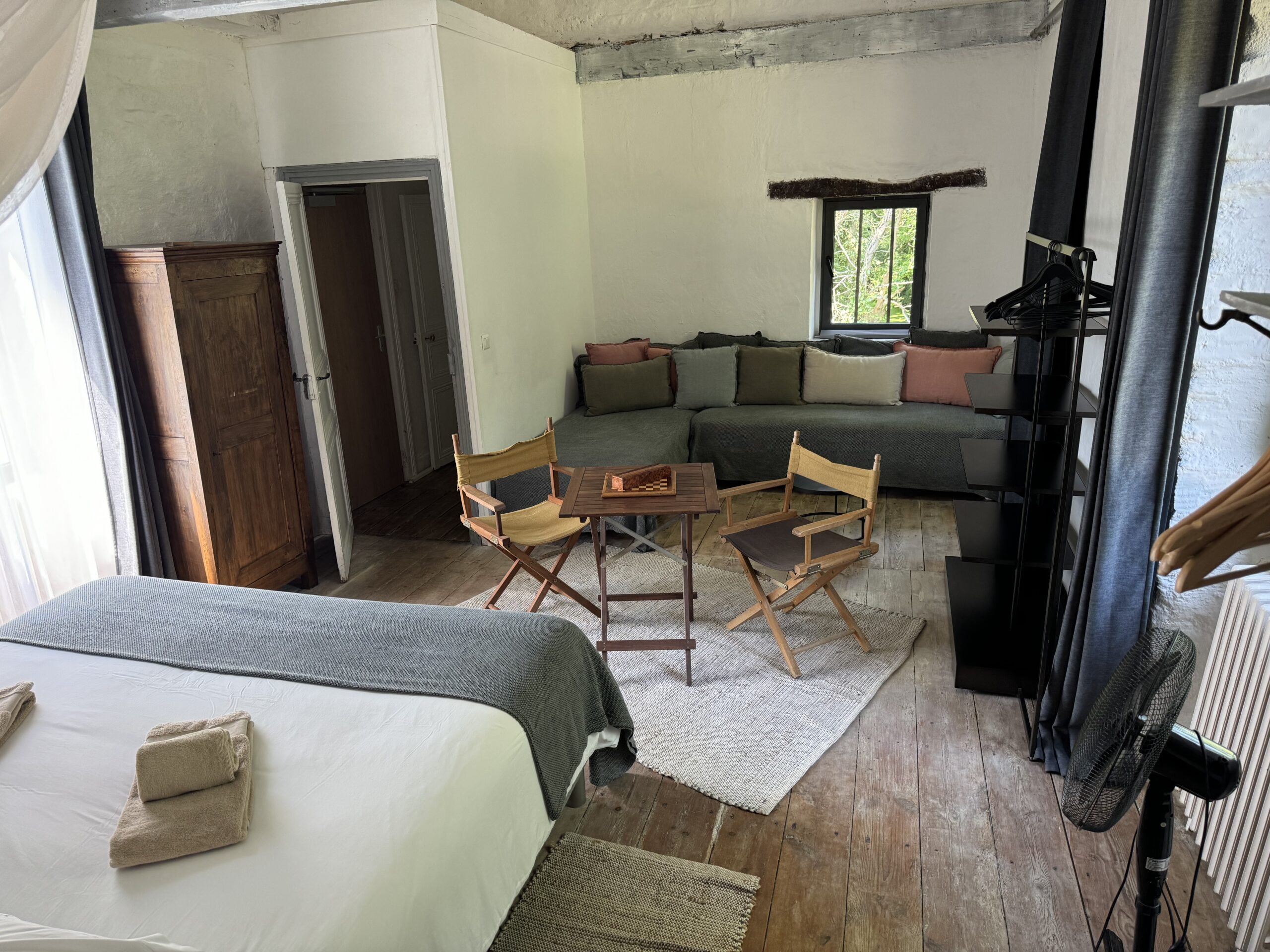 Manoir : 4 chambres entre 30 et 40m2 chacune avec leur propre WC, douche ou baignoire et lavabo. Tommettes, parquets, poutres, murs en pierre.