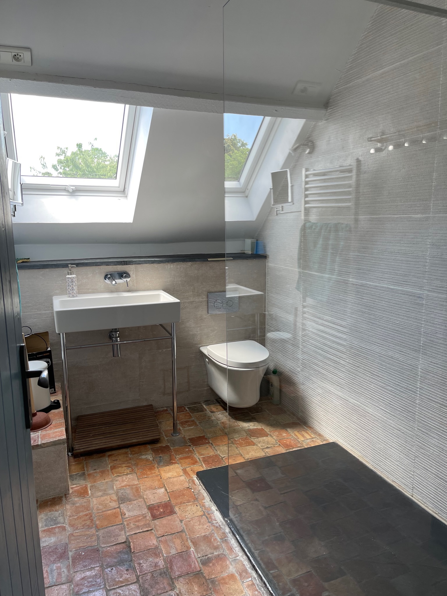 - 1 chambre; avec 2 lits singles (ou 1 lit double) , douche à l’italienne, WC et lavabo